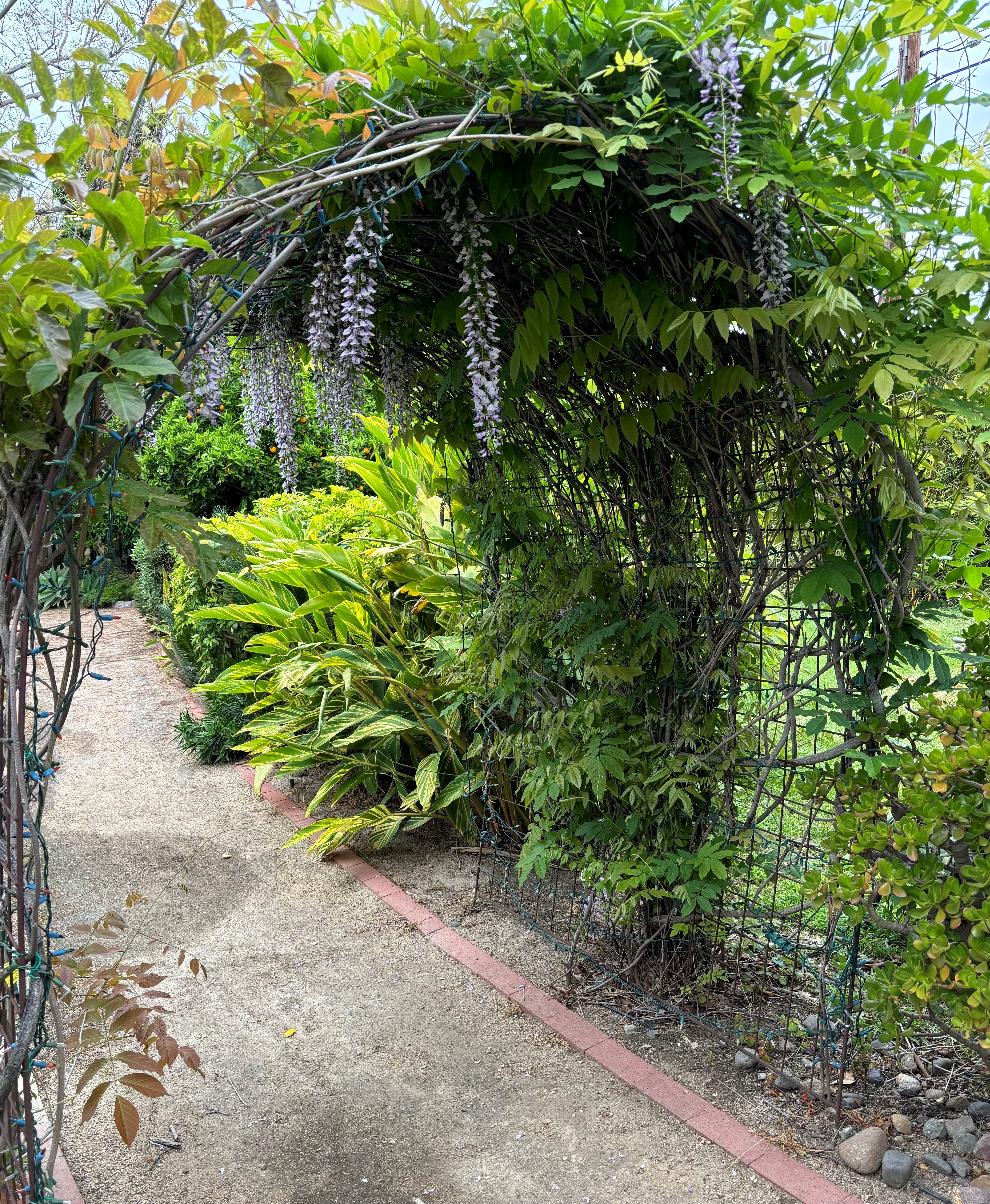 The arbor covered with wisteria vines represents the cycles of creation from the bareness of winter, the promise of spring, the expansion and expression of summer and finally, the disintegration of fall. All of the seed ideas we receive will blossom and then decay in an always-renewing cycle and we are becoming the servants of this universal process.
